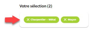 Cet écran vous permet de sélectionner votre ou vos métiers.